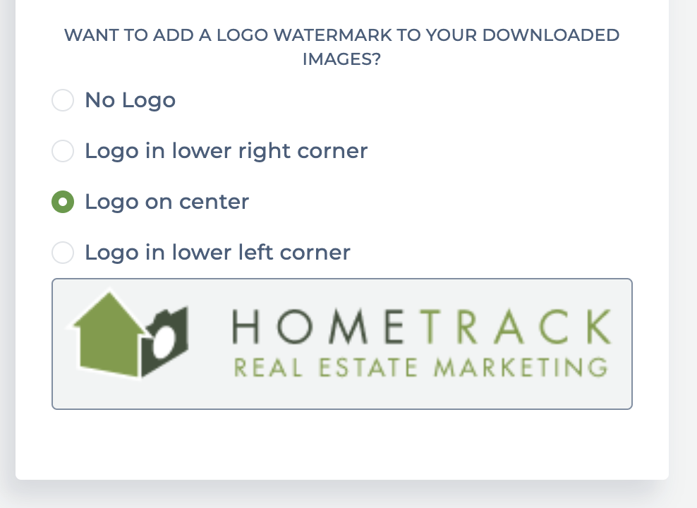 Furthermore, you have the option to download your photos either with your logo or without it. After you upload your logo, you can select its placement on the photo, choosing from the center, the lower right corner, or the lower left corner, according to your preference.