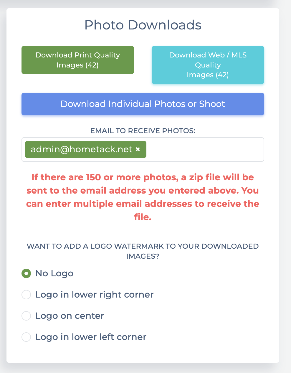 If your gallery contains more than 150 photos, you will receive an email containing a download link that will grant you access to your photos. Additionally, you have the flexibility to manage the email addresses that will receive this download link; you can easily add or remove addresses as needed.